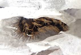 ←前蛹(ぜんよう) 二つ折りのキッチンペーパーに糸を吐いて、ガッチリした蛹室(ようしつ)を作くったので、鋏(はさみ)で開いてみました。 本来の蛹室は土の中なのか、地上の落ち葉を集めてかは分りません。 蛹室は、もしかしたらコケを集めて作る? |
