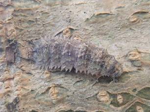 ←ワラジムシのような謎の生き物 笠間市天神の里 体長10mm ハンノキの地上1.8mぐらいの日の当たる幹に2匹着いていました。何者? 5年前、オオムラサキ越冬幼虫を探していたエノキの落ち葉に着いていたことがありましたが、調べもせず放置していました。 |