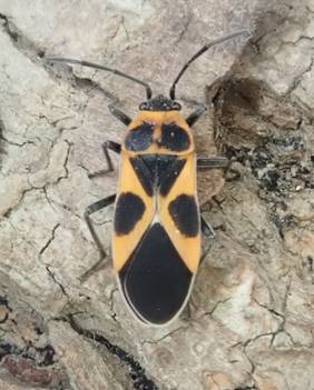 ←ヒメジュウジナガカメムシ マダラナガカメムシ科 水戸市岩根町 成虫出現は3〜12月ですが成虫越冬です。 ヤナギの幹で集団越冬中でした。 寄種植物はガガイモです。 生息域を北上中の昆虫です。 |