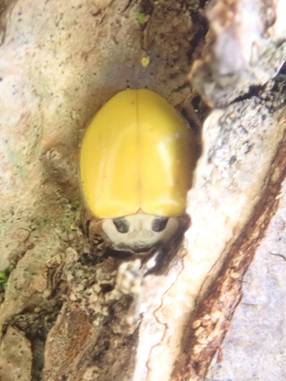 ←キイロテントウ テントウムシ科 那珂市清水洞上の公園 幹の割れ目で越冬中 |