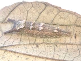 ←オオムラサキ越冬幼虫 タテハチョウ科 今日は他の処で10匹を確保できました。 けれど、ゴマダラチョウが1匹も採れなかったので、後日、別な処を探します。 |