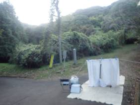 に廻ってライトトラップをしてきました。 隣接して、国立森林総合研究所の研究林ですが、林床はきれいに手入れされていて、低木や草が生えていません。 日の入り時間は5時です。暗くなったら近くでハクビシンが吠えていましたヨ。 |
