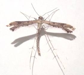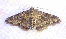 ←オオキノメイガ ツトガ科 成虫出現は6〜11月 幼虫食樹はヤマナラシ、イイギリ、ポプラ、ネコヤナギなどヤナギ科植物です。 ライトトラップで常連客の普通種です。 |