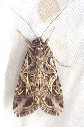 ←ハスモンヨトウ ヤガ科 成虫出現は一年中 幼虫食草は80種以上が知られていて、農業害虫として有名です。 |