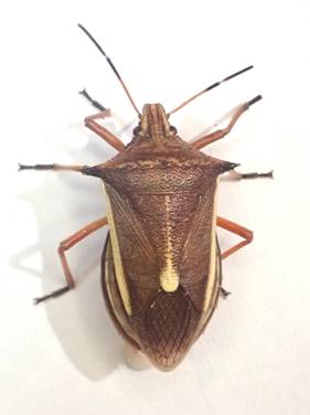 ←シロヘリクチブトカメムシ カメムシ科 偕楽園 成虫出現は5〜11月 南方系のカメムシで、生息域を北上中。 イモムシの体液を吸う肉食カメムシ。 ほとんどのカメムシは果樹などの果汁を吸うなど虫害するのに、これはヨトウムシなどを殺してくれるので益虫とされています。 初見です。 |