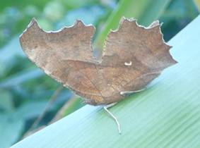 ←キタテハ タテハチョウ科 この秋型はこのまま越冬するので、来年春まで見られます。 イチジクの熟れた実を吸汁しています。 どうせ食べきれないから好きなだけどうぞ。 |