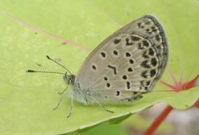 ←ヤマトシジミ シジミチョウ科 急な寒さで動けないようです。 私がかってに植えたイイギリの葉っぱの上にいました。 一応、イイギリを植えたことは、事務所に話してあります。 |