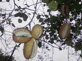 ←ミツバアケビの実 藪の中で大きなアケビの実が口を開いていました。 ヤブの中なので誰も気づかれず取られなかったのでしょう。 このまま、小鳥のおやつに採らずにおきましょう。 |