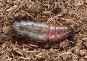←前蛹 孵化19日目 体が縮み歩き廻っているのでチップの中に入れたら潜っていきました。 |