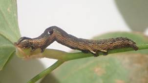 ←3齢 孵化10日目 体長20mm (実測値) 胸横の黒点が目になりました。体の模様も変わりました。 |