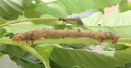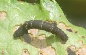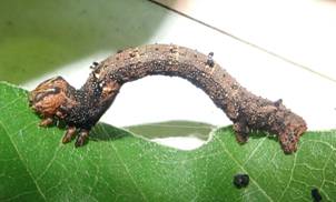 ←2齢? 体長は、やっと10mmぐらい 孵化13日目 クヌギの柔らかい葉っぱがお好みで、硬いところは食べません。 今の時期、柔らかい葉っぱを探すのは大変。 |