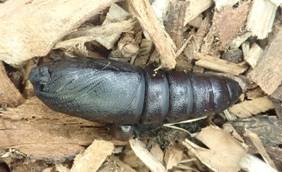これで飼育記録は終了です。年1化なので、羽化は来年8月です。 茨城県初記録なので、ガ屋さんの虫友が欲しいというので提供しますが、来年8月まで湿度と温度を管理維持するのは大変だと思います。 |